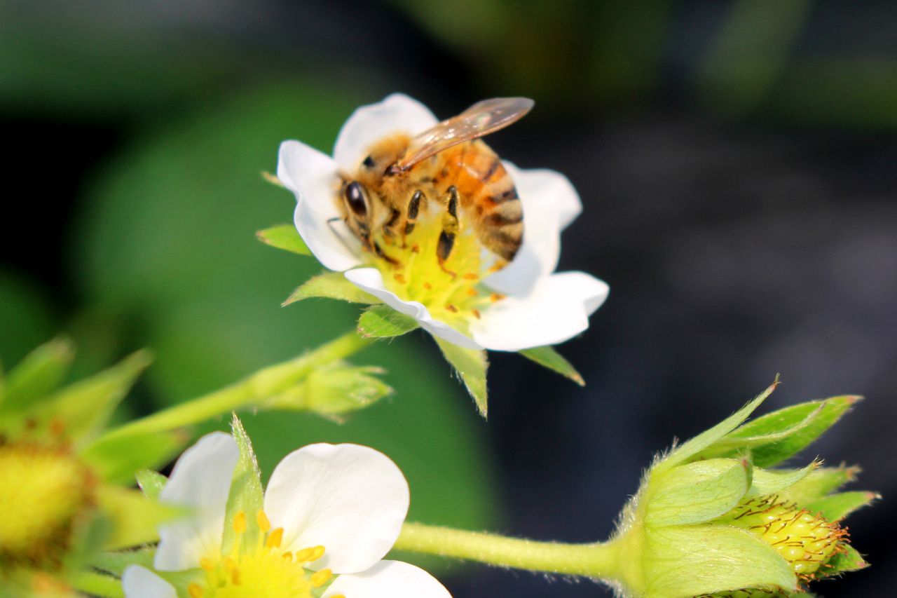 苗がしっかりしてきて、葉も大きくなります。花が咲くと、ミツバチが受粉してくれます。